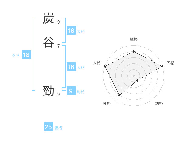 炭谷 勁さんの総格は25画の4点!