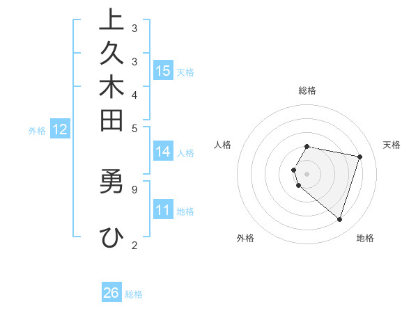 上久木田 勇ひさんを姓名の画数から五運を鑑定