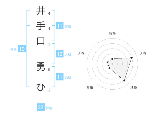 井手口 勇ひさんの地格は11画の4点!