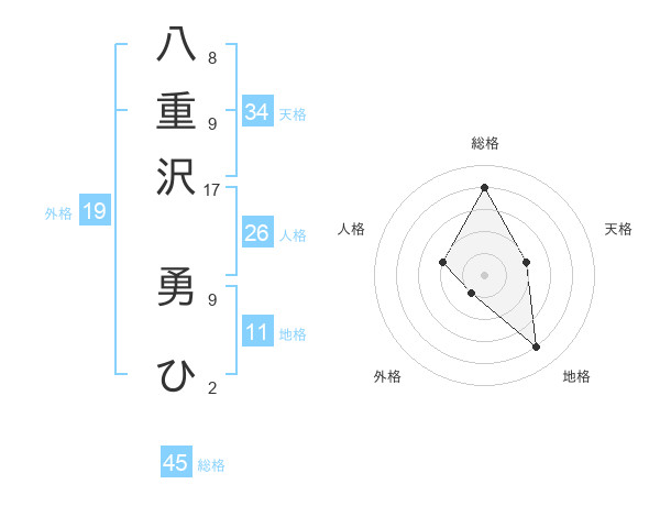 八重沢 勇ひさんを姓名の画数から五運を鑑定