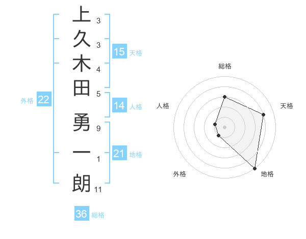 上久木田 勇一朗さんを姓名の画数から五運を鑑定