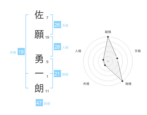 佐願 勇一朗さんの総格は47画の5点!