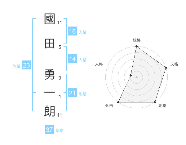 國田 勇一朗さんの総格は37画の5点!