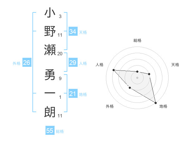 小野瀬 勇一朗さんを姓名の画数から五運を鑑定