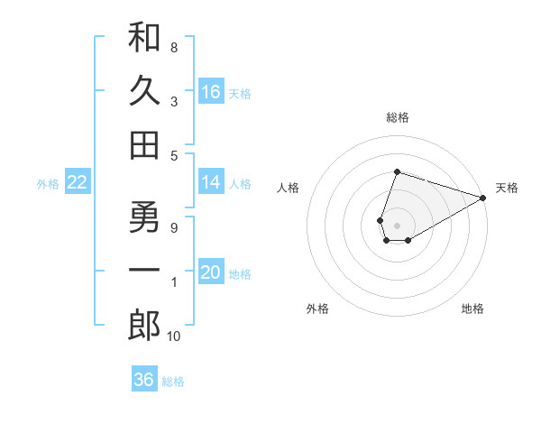 和久田 勇一郎さんを姓名の画数から五運を鑑定