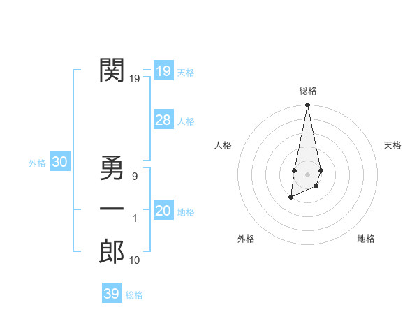 関 勇一郎さんの総格は39画の5点!