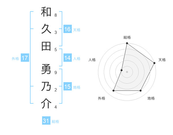 和久田 勇乃介さんを姓名の画数から五運を鑑定