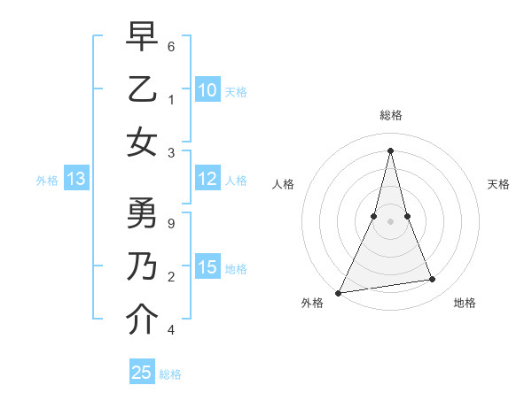 早乙女 勇乃介さんを姓名の画数から五運を鑑定