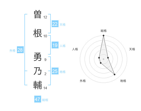 曽根 勇乃輔さんを姓名の画数から五運を鑑定