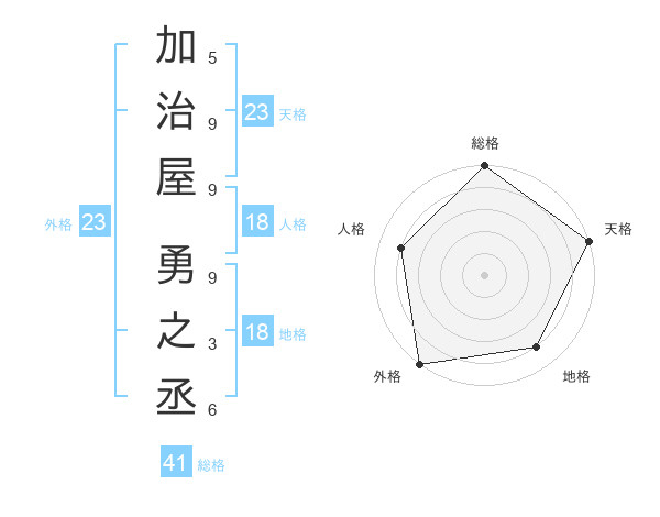 加治屋 勇之丞さんの天格は23画の5点
