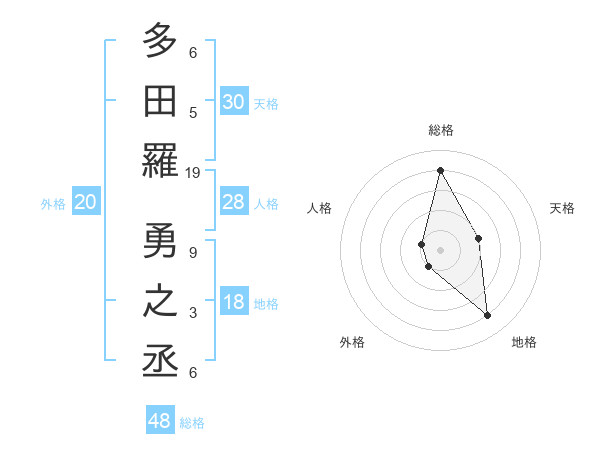 多田羅 勇之丞さんの総格は48画の4点!