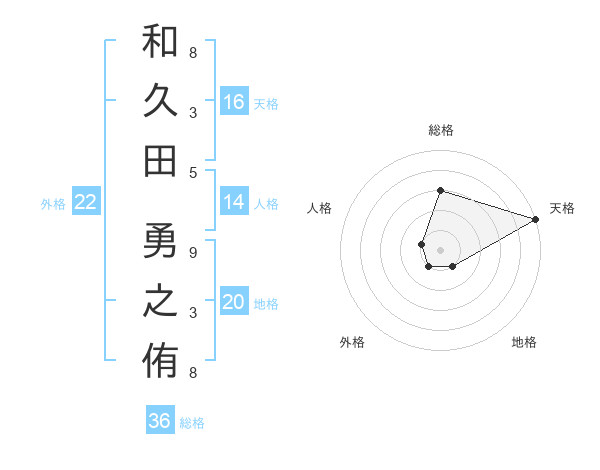 和久田 勇之侑さんを姓名の画数から五運を鑑定