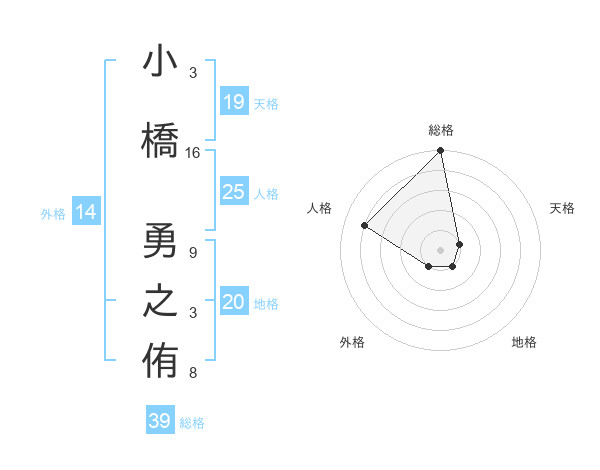 小橋 勇之侑さんを姓名の画数から五運を鑑定