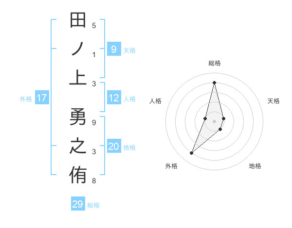 田ノ上 勇之侑さんの総格は29画の4点!