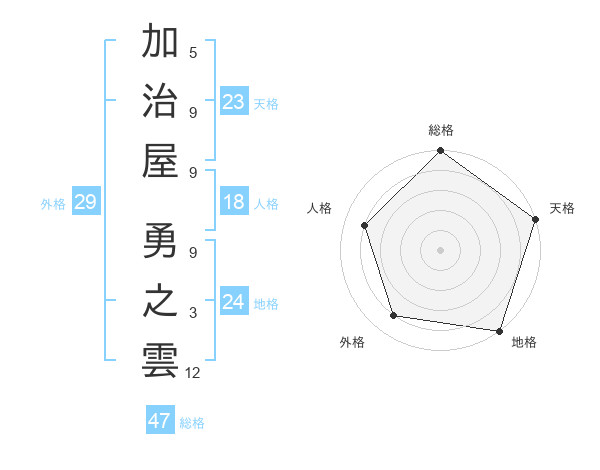 加治屋 勇之雲さんを姓名の画数から五運を鑑定