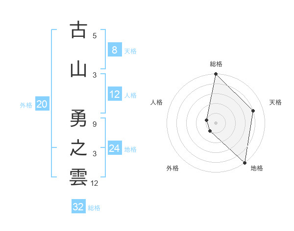 古山 勇之雲さんを姓名の画数から五運を鑑定