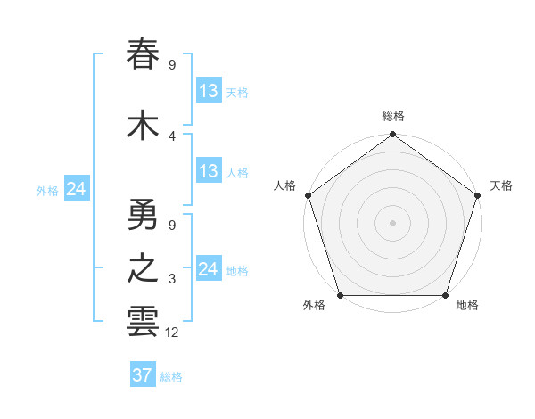 春木 勇之雲さんを姓名の画数から五運を鑑定