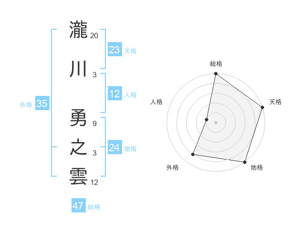 瀧川 勇之雲さんを姓名の画数から五運を鑑定