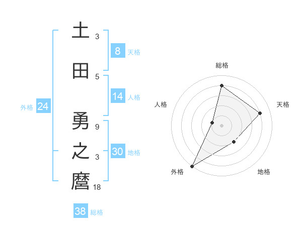土田 勇之麿さんの総格は38画の4点