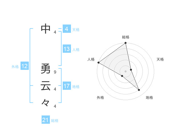 中 勇云々さんの総格は21画の5点!