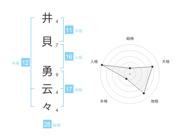 井貝 勇云々さんの天格は11画の4点!