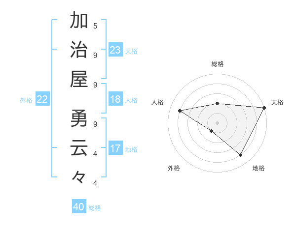 加治屋 勇云々さんの天格は23画の5点