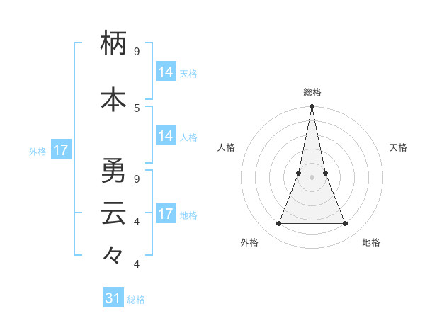 柄本 勇云々さんの総格は31画の5点!