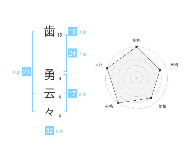 歯 勇云々さんの外格は23画の5点!