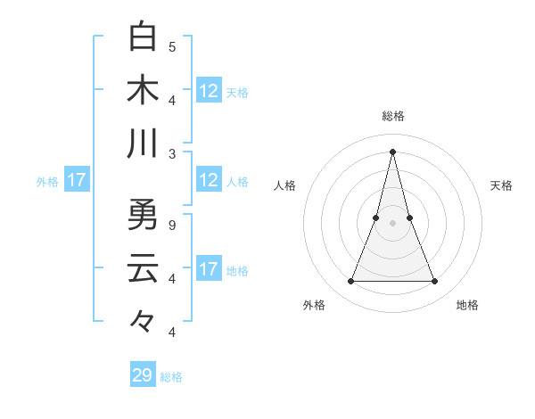 白木川 勇云々さんを姓名の画数から五運を鑑定