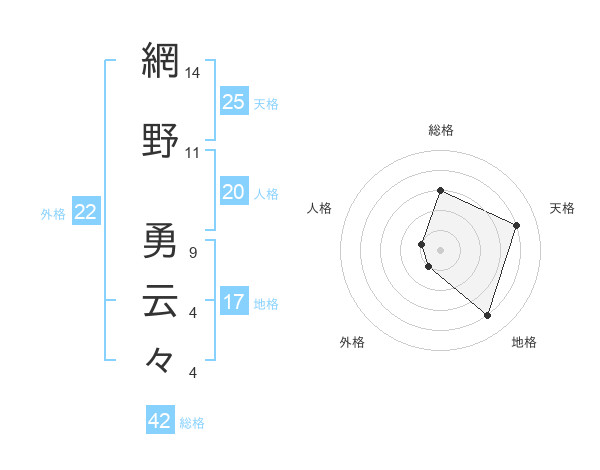 網野 勇云々さんを姓名の画数から五運を鑑定