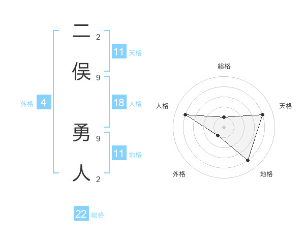 二俣 勇人さんの天格は11画の4点!