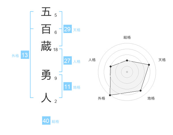 五百蔵 勇人さんの外格は13画の5点!
