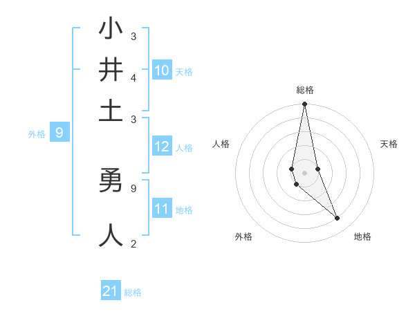 小井土 勇人さんの総格は21画の5点!