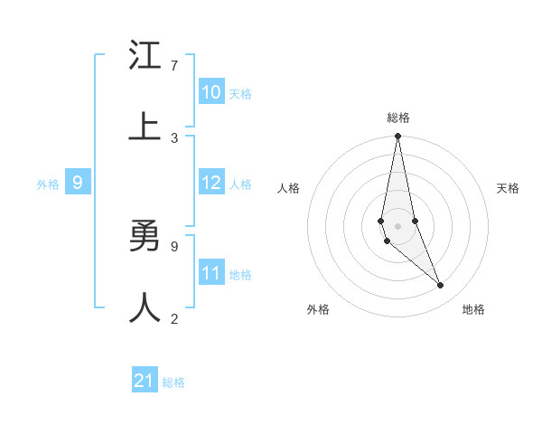 江上 勇人さんの総格は21画の5点!
