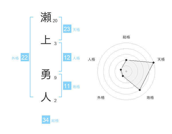瀬上 勇人さんの総格は34画の2点!