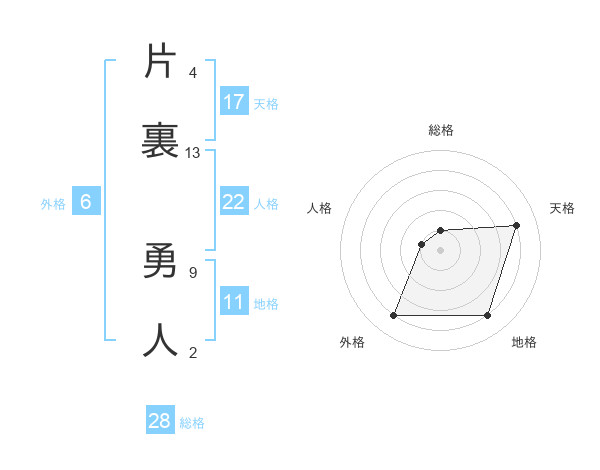 片裏 勇人さんの総格は28画の1点!