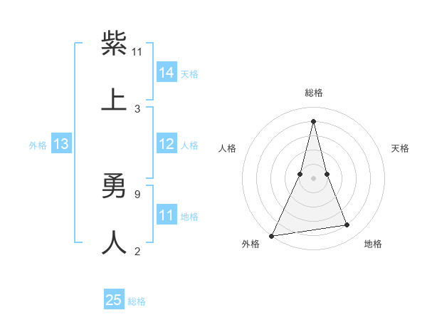 紫上 勇人さんの総格は25画の4点!