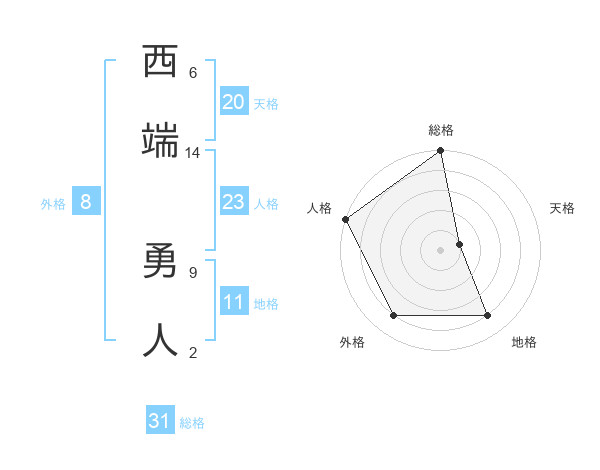 西端 勇人さんの総格は31画の5点!