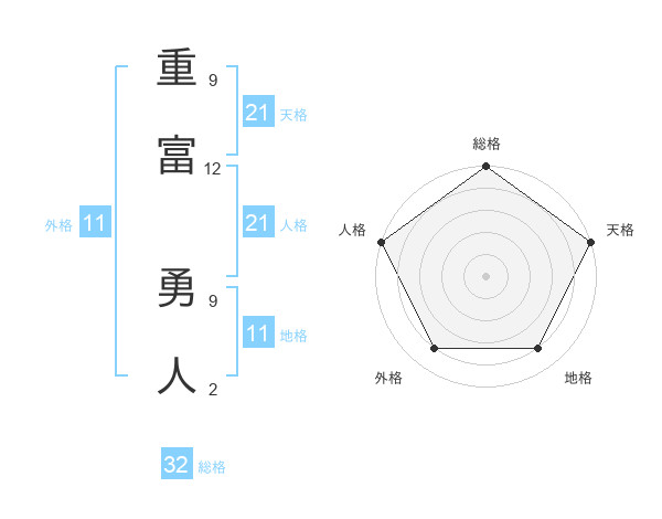 重富 勇人さんの天格は21画の5点!