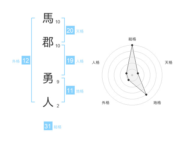 馬郡 勇人さんを姓名の画数から五運を鑑定