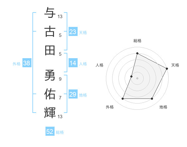 与古田 勇佑輝さんの天格は23画の5点!