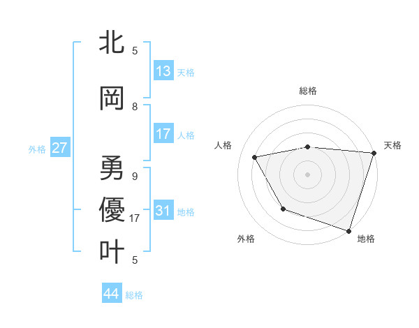 北岡 勇優叶さんを姓名の画数から五運を鑑定
