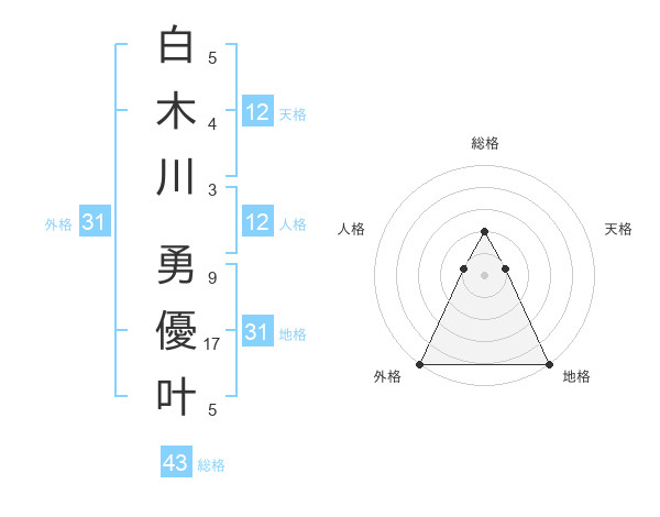 白木川 勇優叶さんの外格は31画の5点!