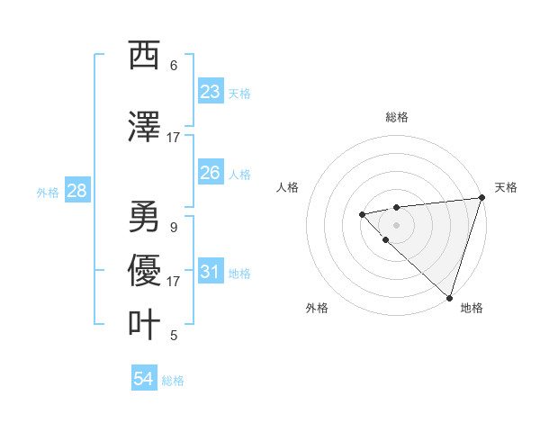 西澤 勇優叶さんを姓名の画数から五運を鑑定