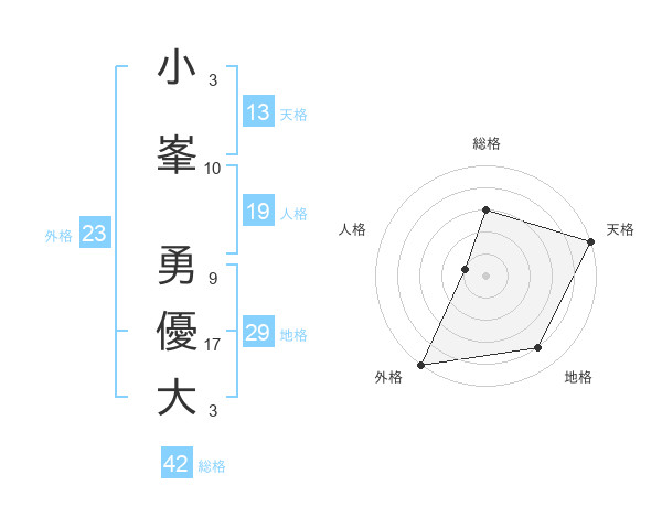 小峯 勇優大さんを姓名の画数から五運を鑑定