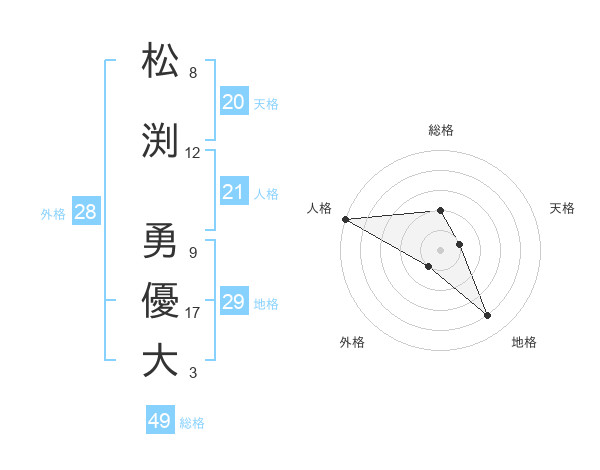 松渕 勇優大さんを姓名の画数から五運を鑑定