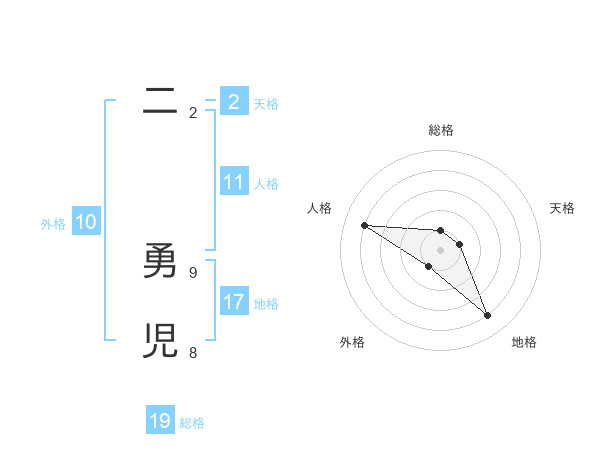 二 勇児さんの総格は19画の1点!