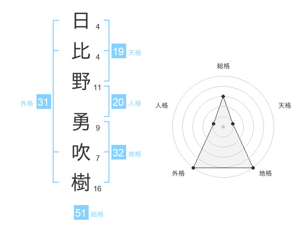 日比野 勇吹樹さんの外格は31画の5点!