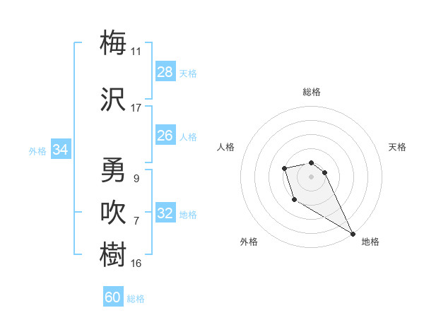 梅沢 勇吹樹さんを姓名の画数から五運を鑑定