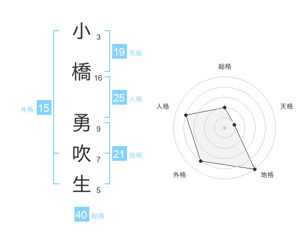小橋 勇吹生さんの総格は40画の2点!